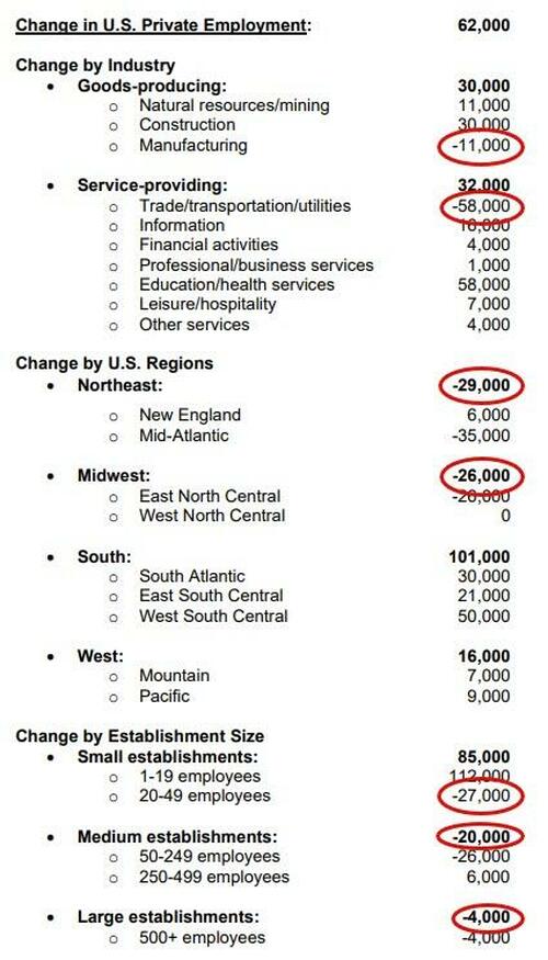 The ADP National Employment report printed a better than expected +62k jobs added in Mar