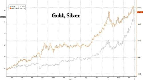 Finally, and as always, we wish all our readers the best of luck in 2026, with much success in trading and every other avenue of life. We bid farewell to 2025 with our traditional and unwavering year-end promise: ZeroHedge will be there each and every day - usually with a cynical smile (and with the CIA clearly on our ass now ) - helping readers expose, unravel and comprehend the fallacy, fiction, fraud and farce that defines every aspect of our increasingly broken economic, political and financial system.