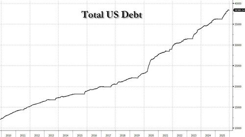 But even ignoring the impact on prices, one can't just undo almost 20 years of central bank mistakes by willing them away (especially after Elon Musk and DOGE confirmed what we said at the start of the year, namely that the level of corruption and out of control spending is so embedded in every corridor of the US government that it will never be eradicated); after all it is the trillions and trillions in monetary stimulus, the helicopter money, the MMT idiocy, and the endless deficit funding by central banks that sent gold and silver into the clearest red alert warning yet that hyperinflation and a fiat collapse is looming, and that the current attempt to stuff 15 years of toothpaste back into the tube, will be a catastrophic disaster.