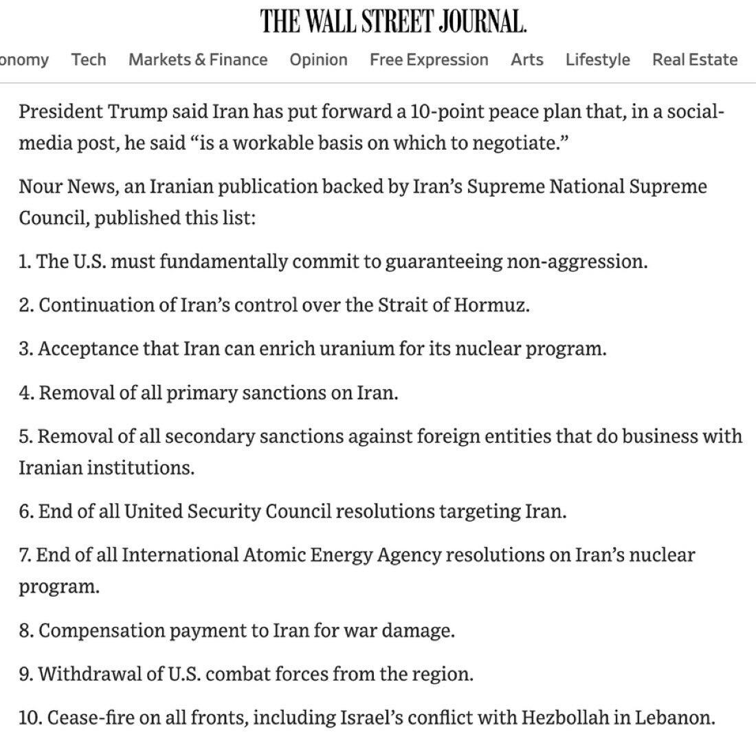 A statement from Iran’s Supreme National Security Council listed 10 points that form the basis for negotiations with the US, including a new “protocol for secure passage” through the strait in co-ordination with Iran’s armed forces.