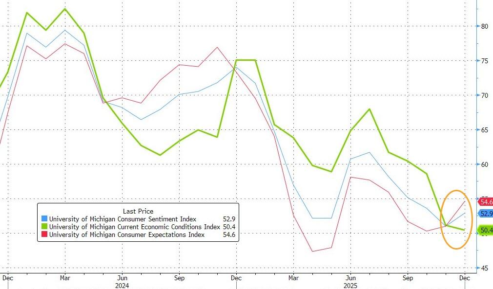10:00 am: Dec F U. of Mich. Sentiment, est. 53.5, prior 53.3