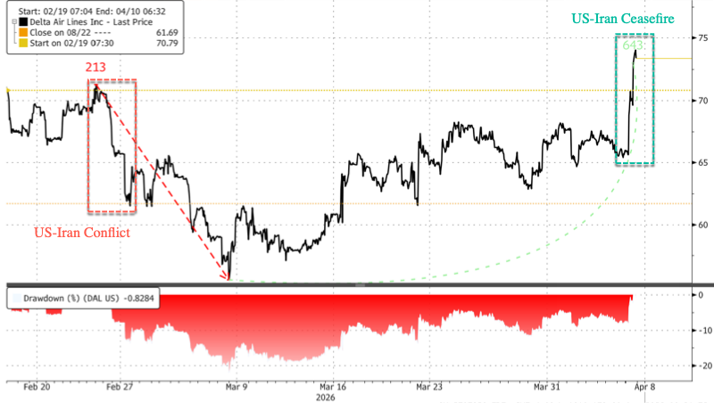 Airline stocks are flying high in premarket trading in New York after the overnight ceasefire between the Trump administration and Tehran. The truce is a positive for the aviation industry, which has been locked in turbulence for six weeks , as surging jet fuel prices have crushed the margins of major carriers, forcing ticket and baggage price hikes and triggering travel chaos across the Gulf region.