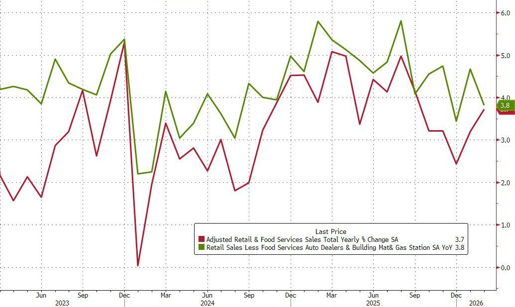Certainly no signs yet of the AI displacement as the no hire, no fire (after JOLTS and Claims) economy chugs along.