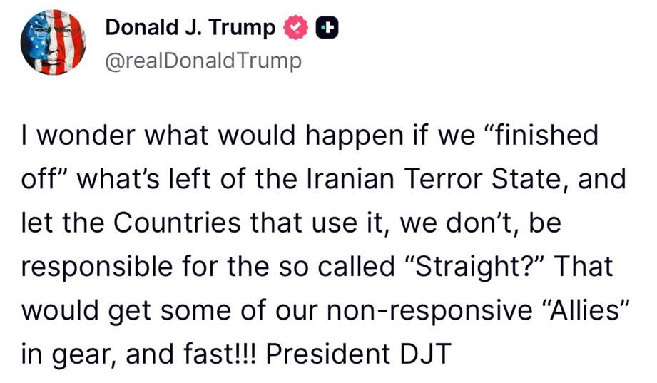 Tehran, for its part, is surprisingly signaling that it has no intention of developing a nuclear weapon. It's hard to evaluate any such official stance in the middle of a war for survival, but FM Araghchi on Wednesday reiterated that Iran's nuclear posture "won’t significantly change" - even as military leaders warn of a "decisive and regrettable" response to Israeli strikes.