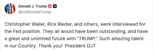 Update (0700ET) : As was apparently leaked last night - for a big win on Polymarket - President Trump has just confirmed he is nominating Kevin Warsh to become the next Fed Chair: