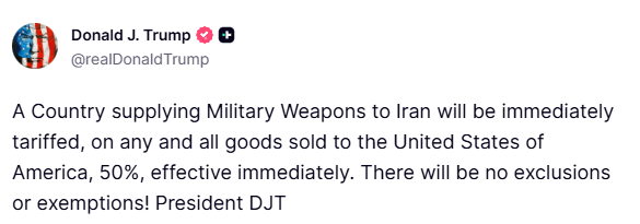 He said that the tariff is $1 per barrel of oil, adding that empty tankers can pass freely.