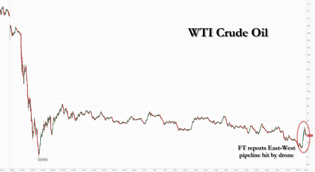 On Wednesday Saudi Arabia’s key East-West pipeline, which the kingdom has been using to reroute oil exports to the Red Sea, was struck by a drone according to people familiar with the matter, despite the ceasefire.